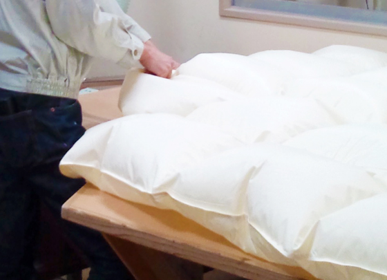 当店が重視しているのは、洗浄・殺菌だけでなく、取り除いた羽毛分を当店で用意した新しい羽毛をしっかり補充することです。それにより、ボリュームダウンすること無く、風合い感・ふんわり感も蘇らせます。
