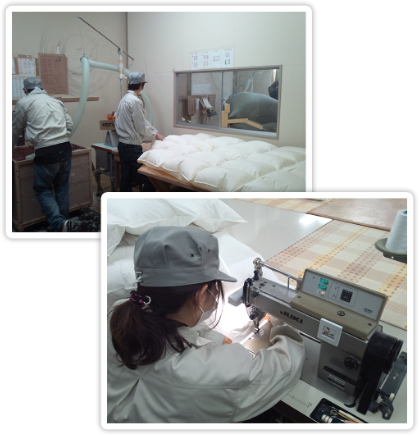 お客様の大切なお布団をまた長くお使い頂くために、 私たちは1枚1枚、心を込めて作業を行っております。