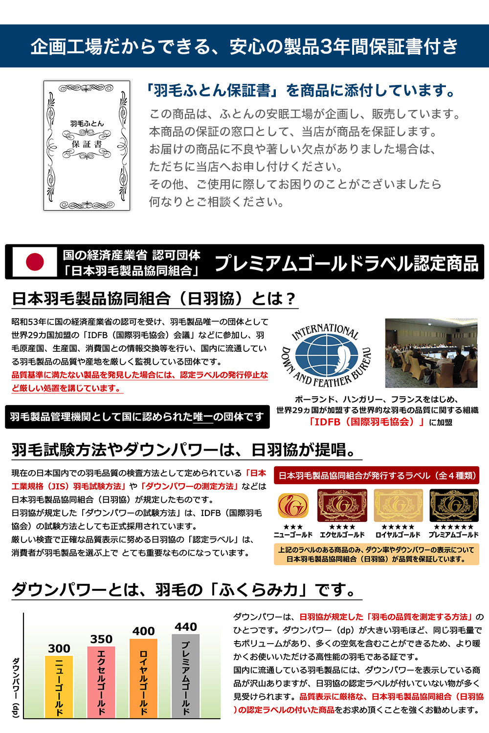 ・「羽毛布団のお手入れ法」小冊子付き