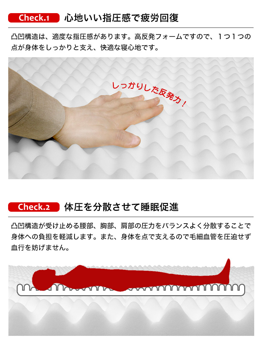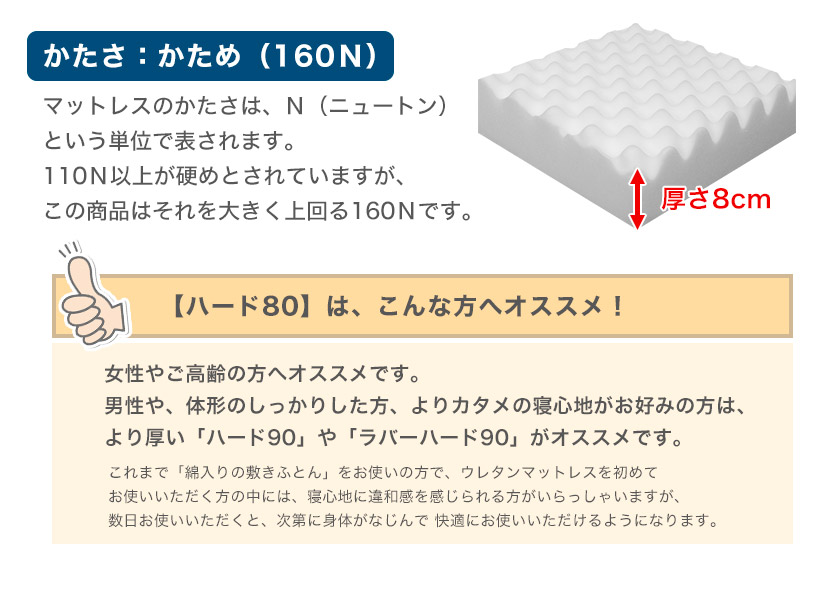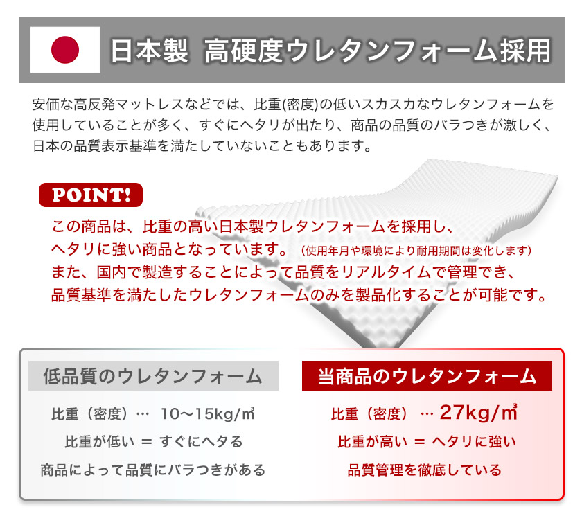 健康敷きふとん 高反発マットレス かため 160N 比重27kg/m3 国産ウレタンフォーム 日本製