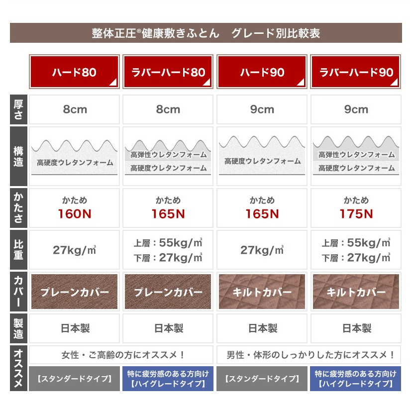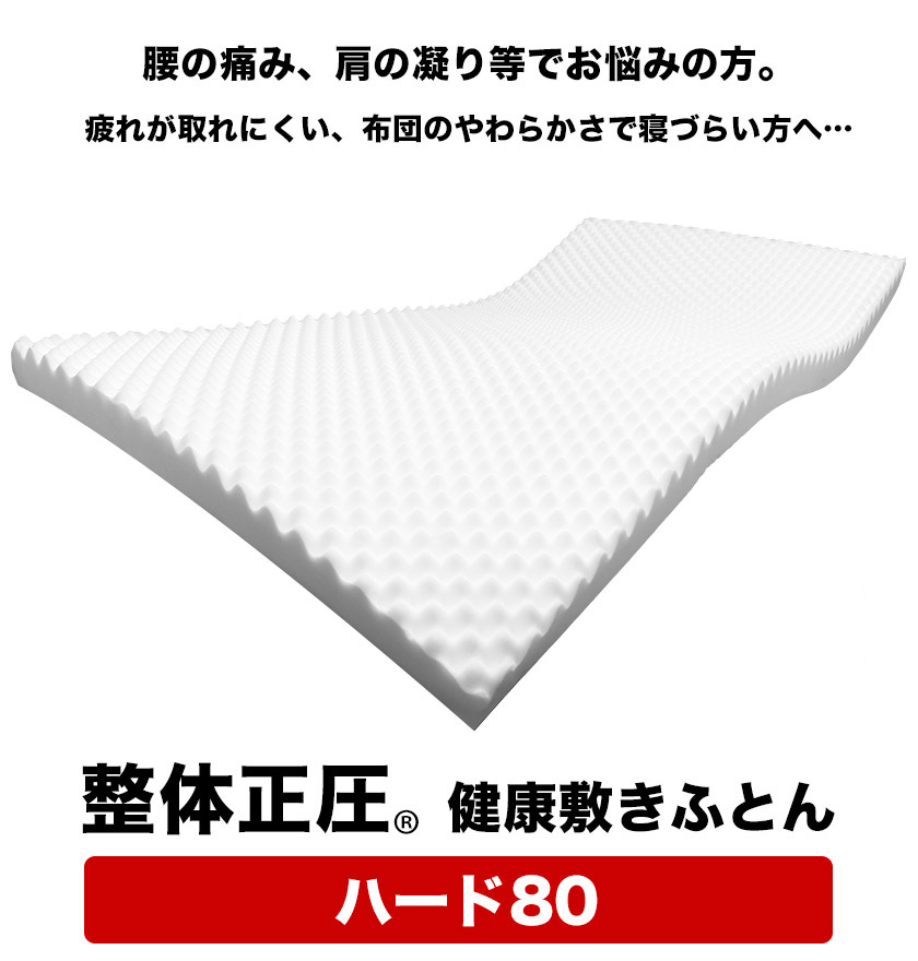【敷きパッドプレゼント中】日本製 整体正圧(R) 健康敷きふとん《ハード80》シングル 97×200cm 厚さ8cm かため(160ニュートン) 国産高硬度ウレタンフォーム プレーンカバー 高反発マットレス