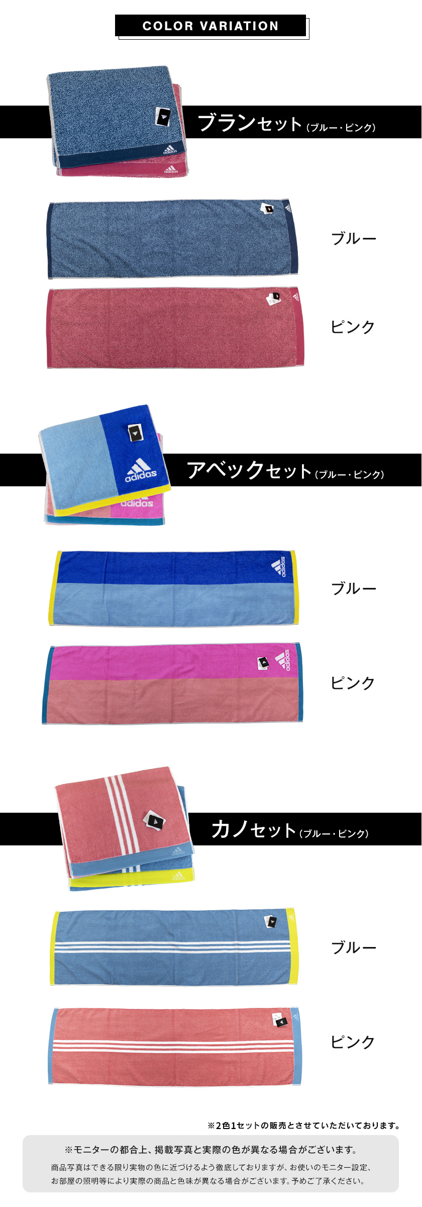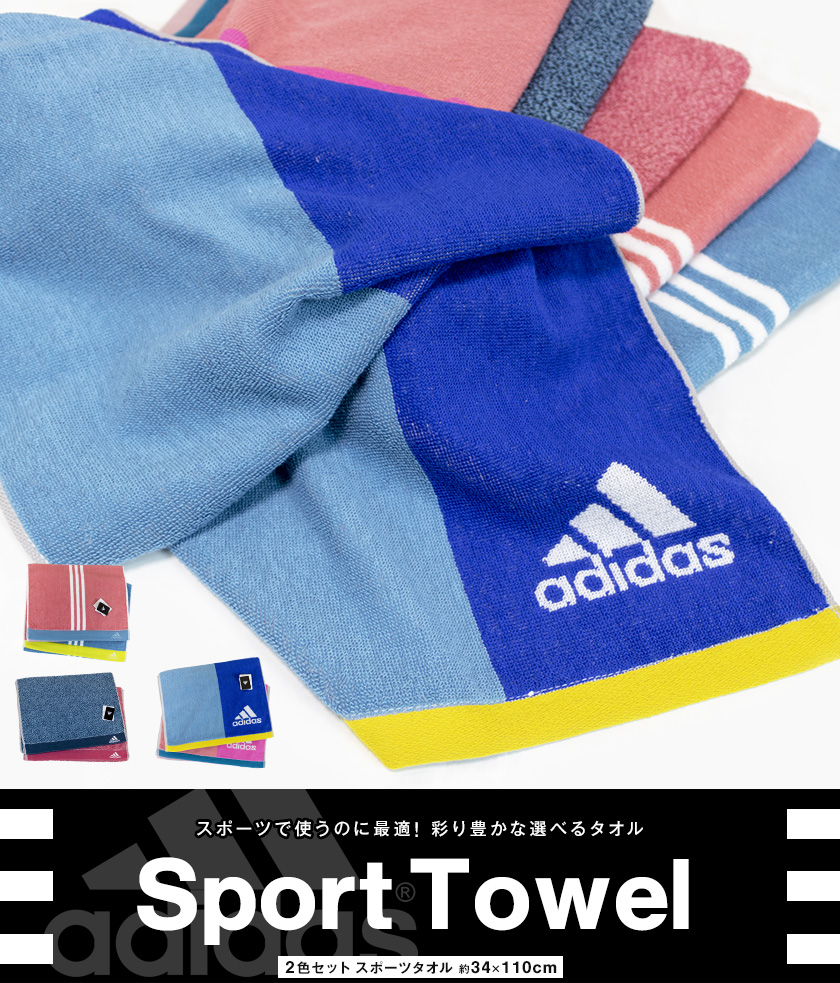 adidas スポーツタオル 2色セット スポーツで使うのに最適なタオル 彩り豊かの選べるタオル 柔らかく吸水性が高い 抗菌防臭加工 ジャガード織りで立体的 ブルー ピンク 約34×110cm 贈り物 ギフト