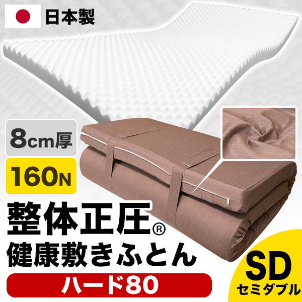 【敷きパッドプレゼント中】日本製 整体正圧(R) 健康敷きふとん《ハード80》セミダブル 120×200cm 厚さ8cm かため(160ニュートン) 国産高硬度ウレタンフォーム プレーンカバー 高反発マットレス