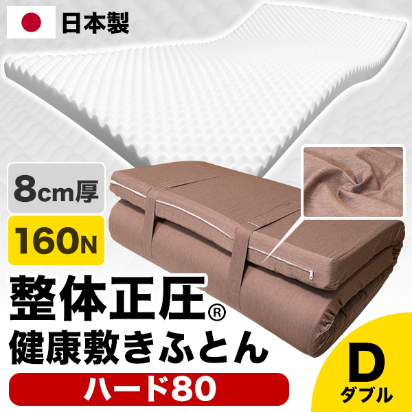 【敷きパッドプレゼント中】日本製 整体正圧(R) 健康敷きふとん《ハード80》ダブル 140×200cm 厚さ8cm かため(160ニュートン) 国産高硬度ウレタンフォーム プレーンカバー 高反発マットレス