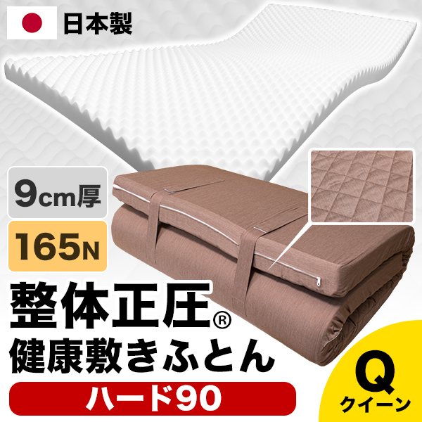 【敷きパッドプレゼント中】日本製 整体正圧(R) 健康敷きふとん《ハード90》クイーン 160×200cm 厚さ9cm かため(165ニュートン) 国産高硬度ウレタンフォーム 樹脂わた入りシートキルトカバー 高反発マットレス