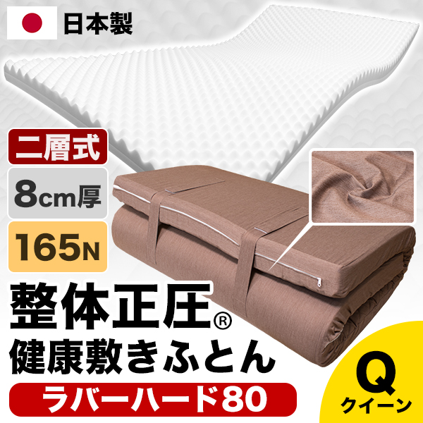 【敷きパッドプレゼント中】日本製 整体正圧(R) 健康敷きふとん《ラバーハード80》クイーン 160×200cm 厚さ8cm かため(165ニュートン) 国産 二層式ウレタンフォーム プレーンカバー 高反発マットレス