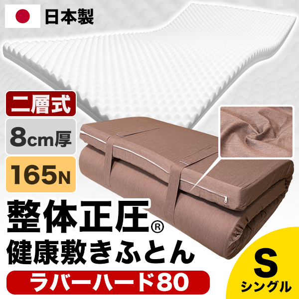 【敷きパッドプレゼント中】日本製 整体正圧(R) 健康敷きふとん《ラバーハード80》シングル 97×200cm 厚さ8cm かため(165ニュートン) 国産 二層式ウレタンフォーム プレーンカバー 高反発マットレス