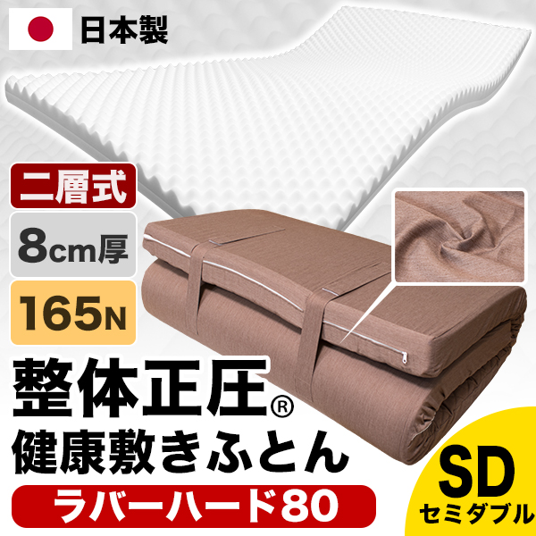 【敷きパッドプレゼント中】日本製 整体正圧(R) 健康敷きふとん《ラバーハード80》セミダブル 120×200cm 厚さ8cm かため(165ニュートン) 国産 二層式ウレタンフォーム プレーンカバー 高反発マットレス
