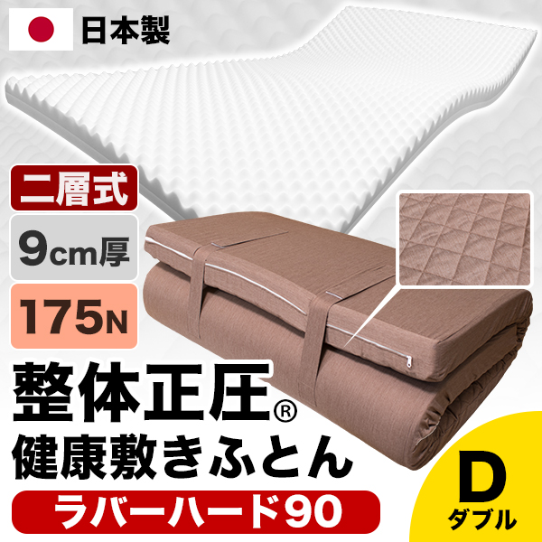 【敷きパッドプレゼント中】日本製 整体正圧(R) 健康敷きふとん《ラバーハード90》ダブル 140×200cm 厚さ9cm かため(175ニュートン) 国産 二層式ウレタンフォーム 樹脂わた入りシートキルトカバー 高反発マットレス