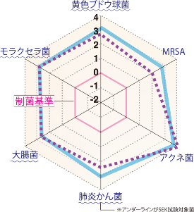 加えてダイワボウでの測定にて、アクネ菌、MRSAの殺菌活性値も確認しました。