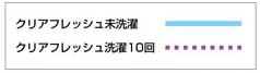 「クリアフレッシュ」は、このように繊維上の様々な匂いの原因菌を減少させます。しかもこの加工は、洗濯後もほぼ劣ることなく効果を発揮します。